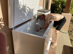 We can’t get the JB Weld in Nicaragua and debated what to do. I went for the cheap silicone option. I applied it carefully and check it whenever I clean out my tub, which is about once every 3 months. I’ve had to replace some areas over the year. My friend, being a contractor decided to sandpaper the seams. Remember I told you that some freezers are made of plastic coated metal… Well, he sanded down to the metal. No problem he thought and put on aquarium grade silicone. Unfortunately it started to rust and the silicone peeled off which led to a leak. This meant he had to take the freezer to bits and leave it out in the sun for a week to dry. Now, I’ve gotten away with normal silicone so far…but when I can get JB Weld down here I will.